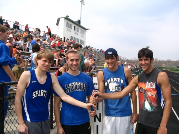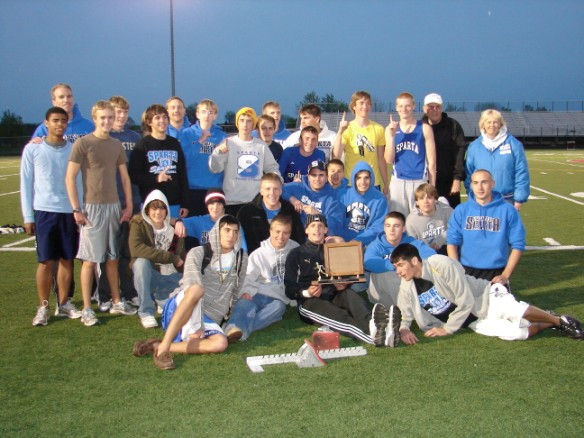 05/31 -- State Finals at Zeeland BOYS: The Spartans had a great showing at the state finals, finishing 7th overall. Brandon VanDriel was the 100 meter state champion for the 2nd year in a row, winning with a time of 10.52. The 800 meter and 3200 meter relay teams also earned All-State honors. The 800 meter team of Josh Patterson, Mitch Arends, Nick Arends and VanDriel placed 2nd and set a new school record with a time of 1:30.01. They also set a new OK Blue Conference record. The 3200 meter team of Nate Dahlgren, Nate Kober, T.J. Blystone and Alex Matthews placed 7th in a time of 8:08.68. The 400 meter relay team of Taylor Womack, M. Arends, N. Arends and VanDriel finished in 9th place and ran a new school record time of 43.97. GIRLS: The Sparta girls were represented at the state finals by Megan Vanderhyde in the long jump, Andrea Kober in the 300 meter hurdles, Halley Love and Lydia Reyburn in the pole vault, and the 800 meter relay team of Chelsea Andrews, Stephanie Hull, Chelsea Love and Kober. 05/27 -- John Bos Meet at Houseman Field BOYS: The 800 meter relay team of Josh Patterson, Mitch Arends, Nick Arends, and Brandon VanDriel placed first and improved their own school record running a time of 1:30.6. Nate Dahlgren won the 800 meter run with a personal best time of 1:57.1 and earned the top spot on the Millinneum Milestone records. Nick Arends won the 300 meter hurdles in a personal best time of 40.7 and Brandon VanDriel won the 100 meter dash in 10.8. GIRLS: Megan Vanderhyde placed third and improved her school record in the long jump to 17' 2.5" . Andrea Kober also placed third and improved her school record, running a personal best in the 300 meter hurdles of 46.6. 05/24 -- MITCA Team State Meet at Jenison BOYS: The boys placed 5th at the meet. Brandon VanDriel won the 100 meter dash in a meet record time of 10.81, and placed 2nd in the 200 meter dash. GIRLS: The girls finished in 6th place (this is a correction from the original results which listed Sparta in 5th place.) Allison Scheidel won the 1600 meter run in a time of 5:17.21. Andrea Kober placed 2nd in the 300 meter hurdles, running a personal best time and improving her school record to 46.77. Megan Vanderhyde was 2nd in the long jump and Katelyn Cnossen 3rd in the high jump. 05/20 -- Grades 9 & 10 at Belding BOYS: The boys placed 4th at the meet. Cody Chamberlain placed first in both the discus and shot put. Taylor Womack won the 300 meter hurdles with a personal best time of 43.2. Eddie Mazurkiewicz placed 2nd in the 800 meter run and Cody DeRuischer was 2nd in the pole vault with 12', earning him the freshman record on the Millennium Milestones. GIRLS: The girls finished in 2nd place. The Spartans were strong in the relays, winning the 400, 800 and 1600 relays. Stephanie Hull won the 200 meter dash and placed second in the 100 meter dash with a personal best of 12.9, earning her the sophomore record and 2nd place overall on the Millennium Milestones. Katelyn Cnossen won the high jump and Halley Love won the pole vault. Megan Heimbaugh was 2nd in the 100 meter hurdles and 3rd in the 300 meter hurdles. Allison Scheidel was second in the 1600 meter run with a personal best time of 5:22.5, earning her the 3rd place spot on the Millennium Milestones. Bailey Ravell was 2nd in the 3200 meter run and Bailey Weidenhamer was 2nd in the long jump. 05/17 -- Regional at Sparta BOYS: The boys placed 2nd in the Regional behind Whitehall. The Spartans had a record-setting day, with 100 meter Regional champion Brandon VanDriel having a part in 4 school records. VanDriel's records included the 100 meter dash in 10.4 and the 200 meter dash in 21.6. His 10.4 in the 100 meter tied for the best in the All-Area records for all time. His times also earned him the record in the 200 meter dash and a tie in the 100 meter dash in the OK Blue Conference Records. The Regional Champion 800 meter relay team of Josh Patterson, Mitch Arends, Nick Arends and VanDriel set a new school record of 1:30.9. The 400 meter relay team of Taylor Womack, M. Arends, N. Arends and VanDriel were also Regional champs and tied the school record with a time of 44.2. Nick Arends placed 2nd in the 110 meter hurdles with a personal best time of 15.1 and qualified to State in both hurdle events. Also qualifying for the State Finals was Nate Kober who placed 3rd in the 3200 meter run with a personal best time of 9:50.9. The 3200 meter relay team of Nate Dahlgren, Eddie Mazurkiewicz, T.J. Blystone and Alex Matthews placed 3rd and also qualified for the State Finals. GIRLS: The girls were runners-up to Forest Hills Northern. Megan Vanderhyde was the Regional champion in the long jump and improved her school record to 16' 10.5" and qualified for the State Finals. Andrea Kober improved her school record in the 300 meter hurdles to 47.5, and qualified to State in both hurdle events. Lydia Reyburn (9' 3") and Halley Love (9') placed 2nd and 3rd in the pole vault and qualified for the State Finals. Placing 2nd in the meet and also qualifying for State was the 800 meter relay team of Chelsea Andrews, Kober, Stephanie Hull and Chelsea Love. Grand Rapids Press Article - Advance Newspaper Article 05/13 -- JV Conference Meet at Sparta BOYS: The JV boys placed 2nd in the meet scoring 125 points behind Comstock Park in 1st place with 141. First place finishers were Cody Deruischer in the pole vault, Cody Chamberlain in both the shot put and discus, Jacob Gilman in the 1600 meter run, and Justin Lang in the 400 meter dash. GIRLS: The girls won the meet with 151 points ahead of Cedar Springs with 73. Taking first place finishes for the girls were the 3200 meter relay team of Casey Trimble, Natalie Klenk, Kaitlan Balderas and Brittany Welch; the 800 meter relay team of Grace Kelly, Courtney VanDriel, Rebecca DeBoer and Emily Hodyna; the 400 meter relay team of Kelly, VanDriel, DeBoer and Brittany George; Trimble in the 1600 meter run; Klenk in the 400 meter dash; Kim Helsel in the 800 met