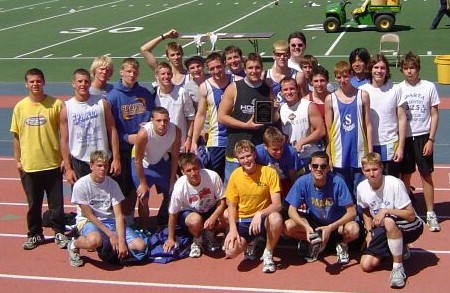 05/22 -- At the John Bos Meet at Houseman Field, A.J. McConnell set a new school record in the 3200 meter run in a time of 9:35.8. The 800 meter relay team of Joe Yost, Chris Carrow, Bryan Wahlfield and Tyson Mengel placed 5th. At the Ovid-Elsie Grades 9 &10 Meet, the Sparta girls were meet champions out of a 14-team field, and the boys placed 8th. Jessy Rollston had a personal best in the discus at 92' 10½", and Justin Chapman had a personal best in the shot put at 40' 5" -- both were Millinium Milestone freshman records. 05/20 -- First place finishers for the Spartans at the Sparta Co-ed Relays were: the 800 meter relay team of Tomi Tomson, Heidi Momber, Bryan Wahlfield and Tyson Mengel; the 3200 meter relay team of Ben Klenk, Joe Skripka, Amanda Young and Kaileigh Russo; the Sparta Medley relay team of Momber, Ashley Johnson, Chris Carrow and Mengel; and the 400 meter relay team of Momber, Tomson, Sean Moody and Carrow. 05/19 -- At the Champion of Champions Meet at Rogers, Carrie Debski was 5th in the 3200 meter run and Lisa Krupp placed 5th in the pole vault. For the boys A. J. McConnell was 3rd in the 1600 meter run, and the 400 meter relay team of Bryan Wahlfield, Tyson Mengel, Sean Moody and Chris Carrow placed 5th. 05/16 -- At the Regional Meet at Muskegon Orchard View, the boys finished in 2nd place out of a 15-team field. A.J. McConnell won the 1600 meter run in an exciting race with a time of 4:21.3. The 400 meter relay team of Bryan Wahlfield, Tyson Mengel, Sean Moody and Chris Carrow, took first place and set a new school record with a time of 44.2. The 800 meter relay team (Joe Yost, Carrow, Wahlfield and Mengel) also placed first. Also qualifying for the State Finals on May 31 were Nick Montgomery in the high jump, Carrow in the 100 meter dash, and McConnell in the 3200 meter run. Lisa Krupp qualified for the State Finals by placing 2nd in the pole vault. Ashley Greenup and Carrie Debski qualified in the 3200 meter run. Other Sparta girls who earned points at the Regional were Tomi Tomson, Kaileigh Russo, Heidi Momber and Ashley Johnson. 05/15 -- At the JV Conference Meet at Sparta, the Sparta girls took first place. First place finishers were Kristen Bergstrom, Katie Cheslek, Kami Cowden, Naomi Reyburn, Amanda Young, Kristi Ingersoll, and the 800, 1600, and 3200 meter relay teams. The boys finished in second place. First place finishers were Josh Carter, Pete Antor, and the 3200 meter relay team of Jason Farlow, Aiden Fairman, J.J. Shangle and Randy Jacobsen. 05/12 and 5/13 -- The OK-Gold Conference Meet was held at Hastings. The boys placed 2nd in the meet behind Cedar Springs. First place finishers for the Spartans were Tim Stark in the discus, A.J. McConnell in the 1600 meter run, and Chris Carrow,Tyson Mengel, Sean Moody and Bryan Wahlfield in the 400 meter relay. Their first place finishes earned them All-Conference honors. Also earning points for the Spartans were Barry Volkers, Victor Jaramillo, Curt Meyer, Nick Montgomery, Tim VanNatter, Mike Haskell, Joe Skripka, Kevin Coalter, Joe Yost, and Ben Klenk. The girls placed 6th in the meet. A highlight of the meet for the Spartans was a school record performance by Lisa Krupp in the pole vault at 9' 11½. Krupp earned All-Conference honors along with Carrie Debski, who placed in the 1600 and 3200 meter runs and the 3200 meter relay. Also earning points were Michelle Bluitt, Jessy Rollston, Sara Young, Sara Rodgers, Kaileigh Russo, Tomi Tomson, Heidi Momber, Ashley Johnson, Ashley Greenup, and Justine Todd. 05/09 -- The girls defeated Hasting 101 - 35. Winning events for the Spartans were: Jessy Rollston in the discus; Tomi Tomson in the long jump and 100 meter hurdles; Lisa Krupp in the pole vault; Michelle Bluitt in the shot put; the 3200 meter relay team of Kim Rodgers, Stacey Armock, Amanda Young, and Kaileigh Russo; Heidi Momber in the 100 and 200 meter dashes; the 400 and 800 meter relay teams of Kaileigh Russo, Ashley Johnson, Heidi Momber, Kristi Ingersol, and Tomi Tomson; Kaileigh Russo in the 400 meter dash; Naomi Reyburn in the 300 meter hurdles; Sara Young in the 800 meter run; Carrie Debski in the 3200 meter run; and the 1600 meter relay team of Krista Ingersoll, Sara Young, Justine Todd, and Kaileigh Russo. The boys ended their dual season 7-1 with a decisive win over Hastings. First place finishers for the Spartans were: Nick Montgomery in the high jump; Barry Volkers in the shot put; Tim Stark in the discus; Josh Carter in the pole vault; Chris Carrow in the 100 meter dash; Tyson Mengel in the 200 meter dash; Joe Yost in the 400 meter dash; A.J. McConnell in the 1600 meter run; Randy Jacobsen in the 3200 meter run; the 400 meter relay team of Bryan Wahlfield, Mengel, Carrow, and Sean Moody; the 800 meter relay team of Yost, Carrow, Wahlfield and Mengel; and the 1600 meter relay team of Yost, Ben Klenk, Moody and Kevin Coalter. The OK-Gold Conference Meet will be held on Monday and Tuesday at Hastings. 05/05 -- The Sparta boys defeated Kenowa Hills 88-48. First place finishers for the Spartans were Kevin Coalter, Joe Yost, Chris Carrow, Bryan Wahlfield, Tyson Mengel, A.J. McConnell, Curt Meyer, Tim Stark, Nick Montgomery and Josh Carter. The Spartans improved their record to 6-1 in the OK-Gold with only one week left before the conference meet. The girls lost to an undefeated Kenowa Hills squad by a score of 94-43. Winning events for the Spartans were Tomi Tomson in the 100 meter hurdles, Michelle Bluitt in the shot put, and Lisa Krupp in the pole vault. 05/01 -- In a home meet against Wayland, the Sparta boys easily outscored their opponents by a score of 102-26. First place finishers were: Tim Stark in the discus; Nick Montgomery in the high jump; Barry Volkers in the shot put; Kevin Coalter in the 110 and 300 meter hurdles; Chris Carrow in the 100 meter dash; A.J. McConnell in the 1600 and 3200 meter runs; Mike Haskell in the 800 meter run; Bryan Wahlfield in the 200 meter dash; the 400 meter relay t